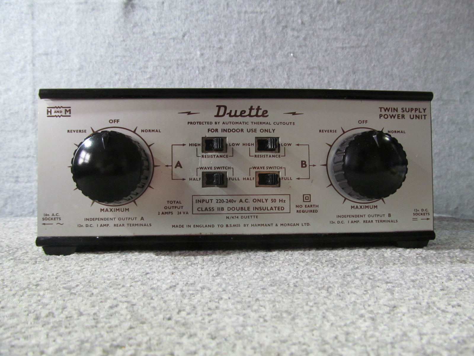 The original British designed and built two track controller with auxilary AC and DC outlets.